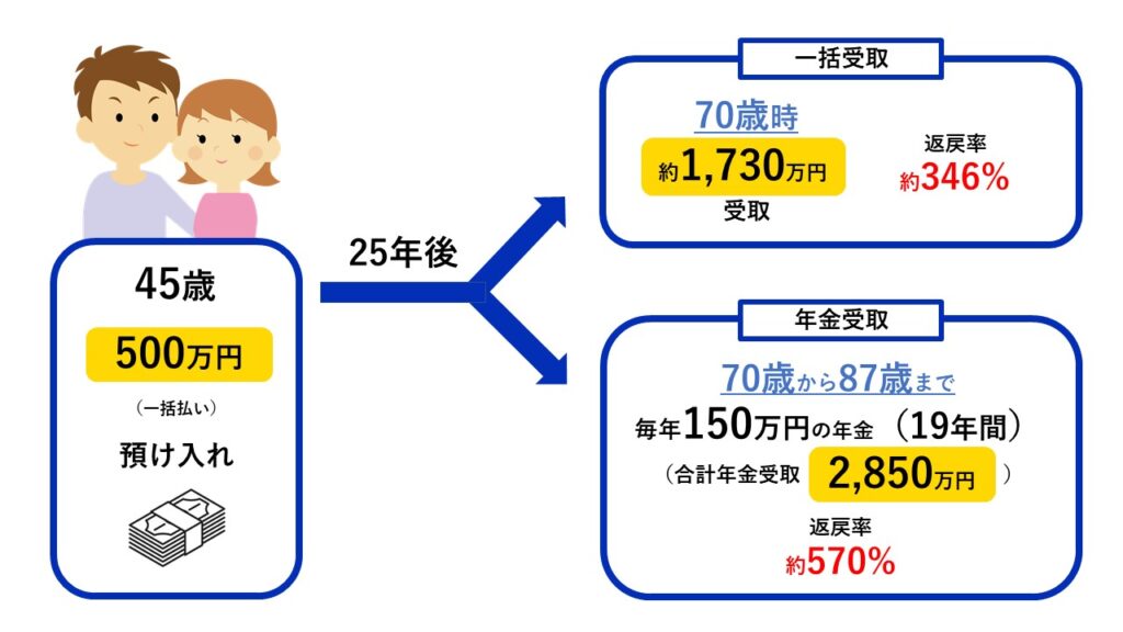 45歳・500万円一括で預けた場合(保険料総額500万円)